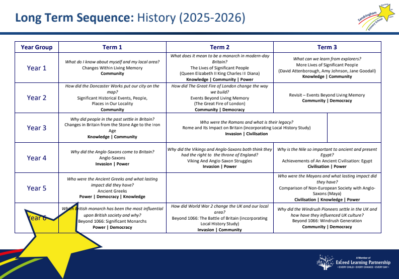 • Progression of History including alignment with the National Curriculum, substantive concepts, big ideas and questions as well as Tier 2 and Tier 3 vocabulary